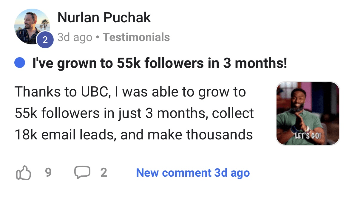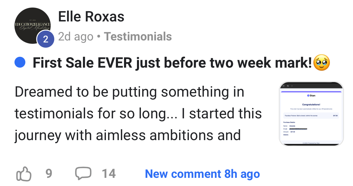 Get instant access to a success community where you can network & ask questions. We host weekly calls on mindset & business.